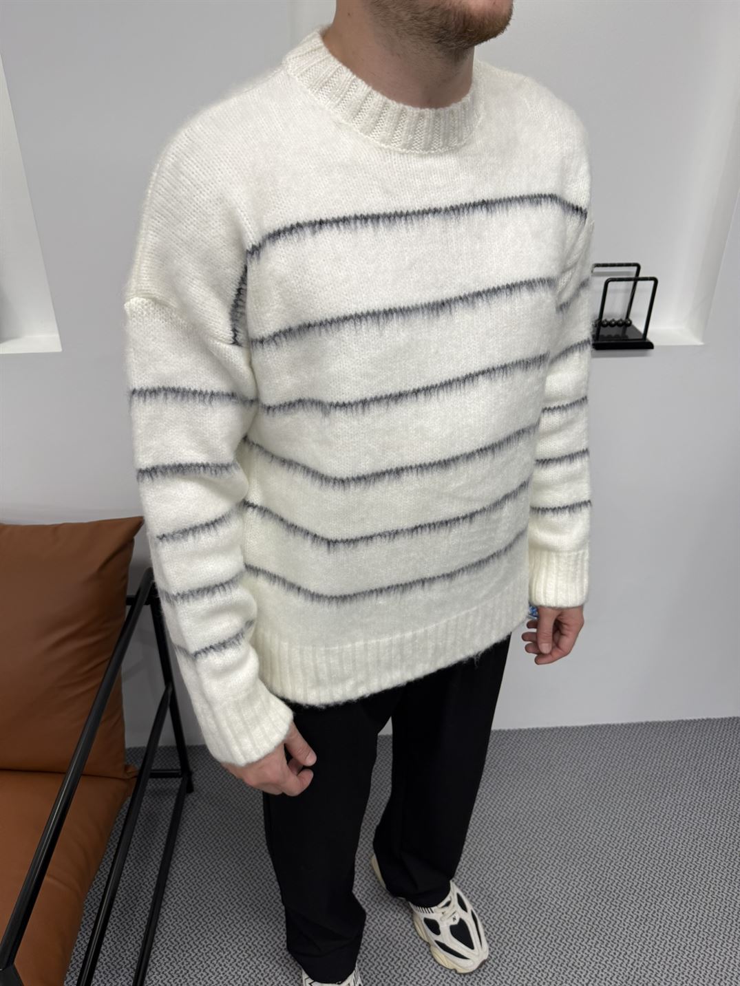 BEYAZ ÇİZGİLİ PELUŞ KAZAK